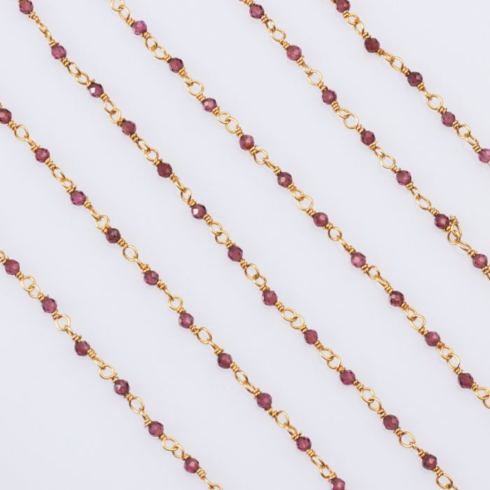 Łańcuch srebrny AG925 pozłacany z granatem pozłacany 2mm