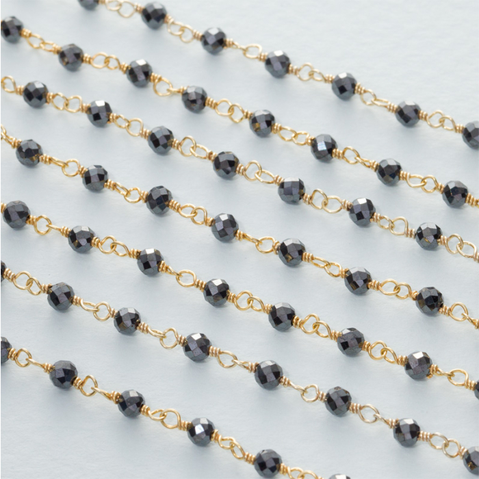 Łańcuch srebrny AG925 pozłacany z hematytem fasetowanym 3mm