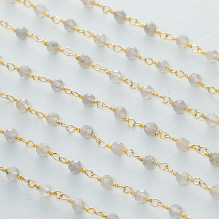 Łańcuch srebrny AG925 pozłacany z labradorytem fasetowanym 3mm