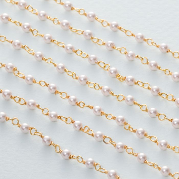 Łańcuch srebrny AG925 pozłacany z perłą majorka 3mm
