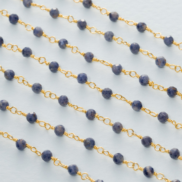 Łańcuch srebrny AG925 pozłacany z szafirem fasetowanym 3mm