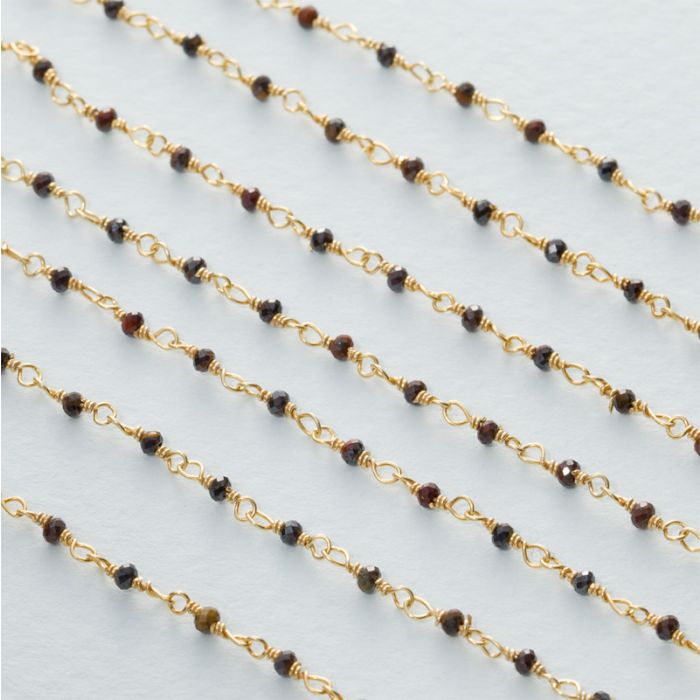 Łańcuch srebrny AG925 pozłacany z zielonym granatem fasetowanym 2x1.5mm