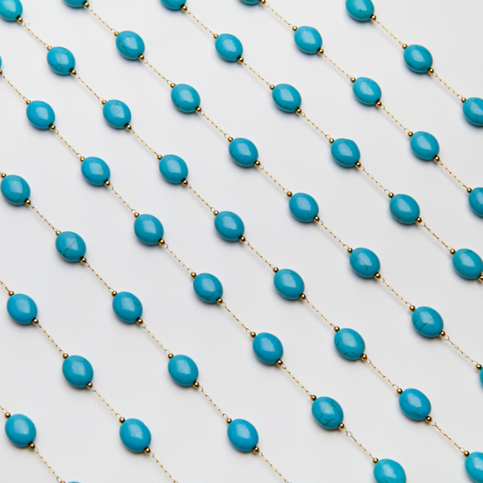 Łańcuch z howlitem niebieskim ze stali chirurgicznej w kolorze złotym 9x5mm