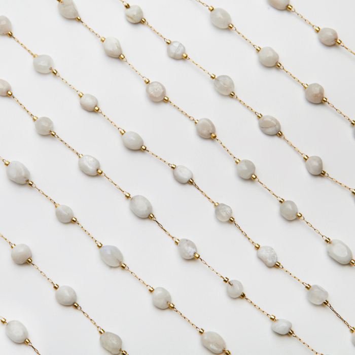 Łańcuch z kamieniem księżycowym ze stali chirurgicznej w kolorze złotym 13x4mm