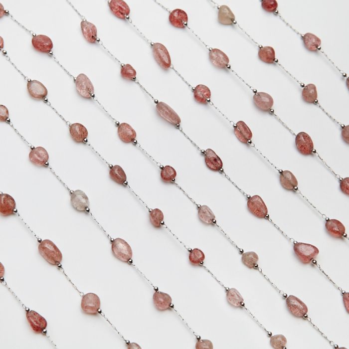Łańcuch z kryształem truskawkowym ze stali chirurgicznej w kolorze srebrnym 13x4mm