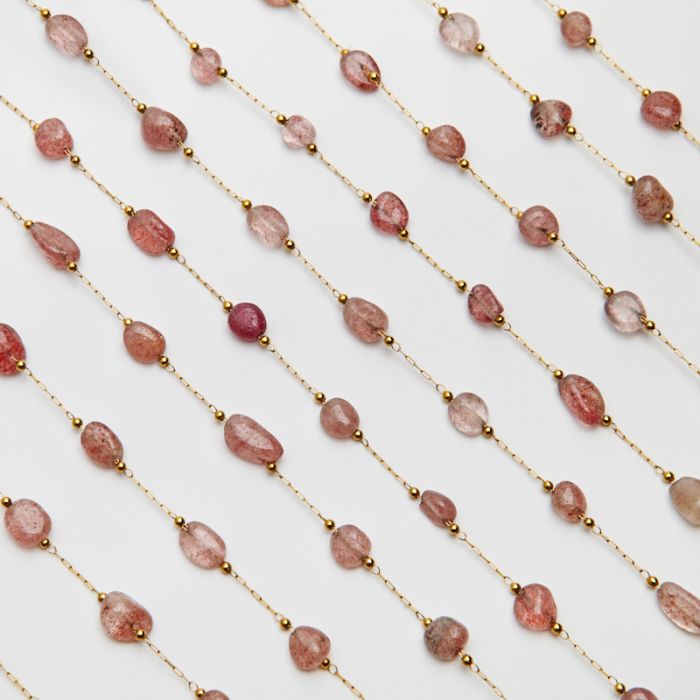 Łańcuch z kryształem truskawkowym ze stali chirurgicznej w kolorze złotym 13x4mm