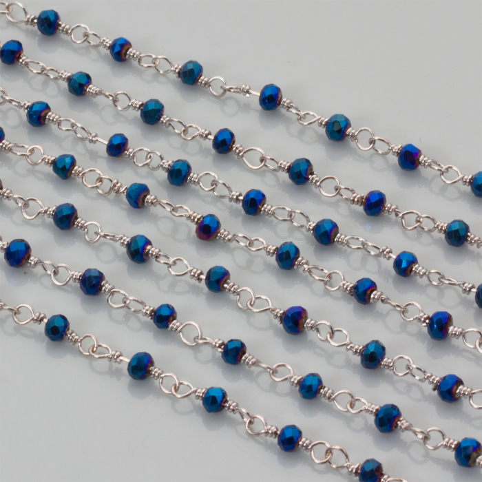 Łańcuch z kryształkami oponkami 3x4mm metallic blue 3x4mm