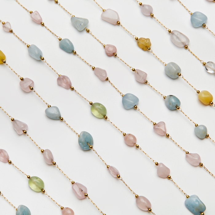Łańcuch z morganitem ze stali chirurgicznej w kolorze złotym 13x4mm