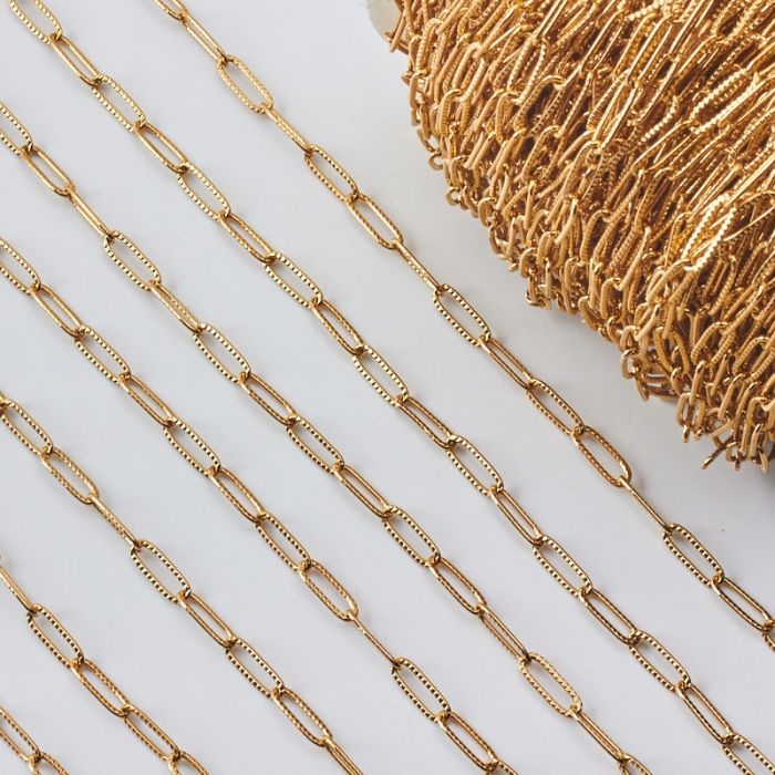 Łańcuch ze stali chirurgicznej karbowane spinacze w kolorze złotym 12x4,5mm
