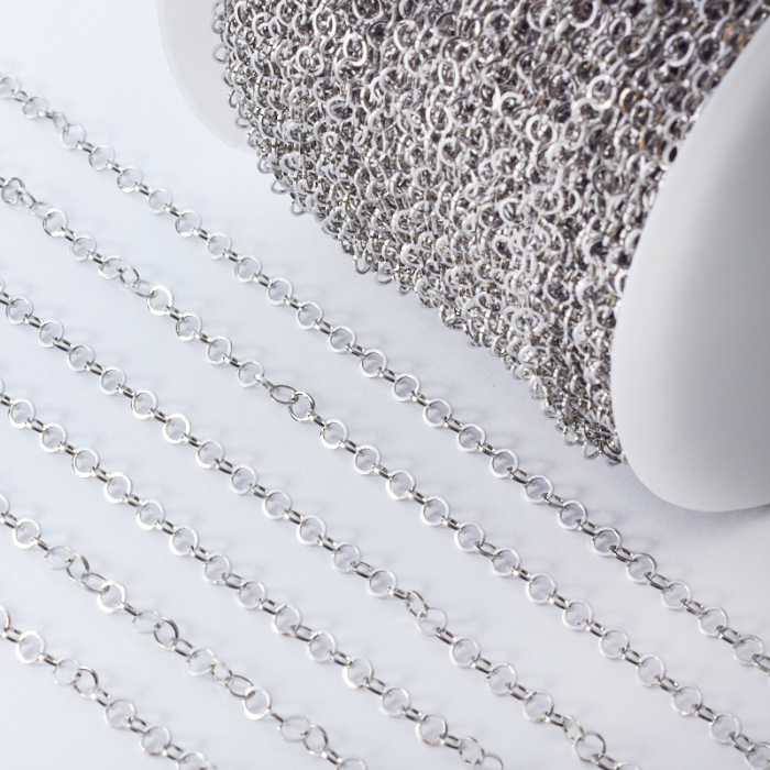 Łańcuch ze stali chirurgicznej kółka błyszczące w kolorze srebrnym 4mmTo trwały i estetyczny element do tworzenia biżuterii handmade. Stal szlachetna jest ceniona za odporność na korozję i estetyczny wygląd w codziennym użytkowaniu.Łańcuszek ze stali szlachetnej to praktyczna baza do tworzenia naszyjników, bransoletek i innych projektów biżuteryjnych. Może pełnić funkcję gotowego elementu nośnego albo stanowić część większej kompozycji z zawieszkami, łącznikami czy detalami dekoracyjnymi.Rozmiar