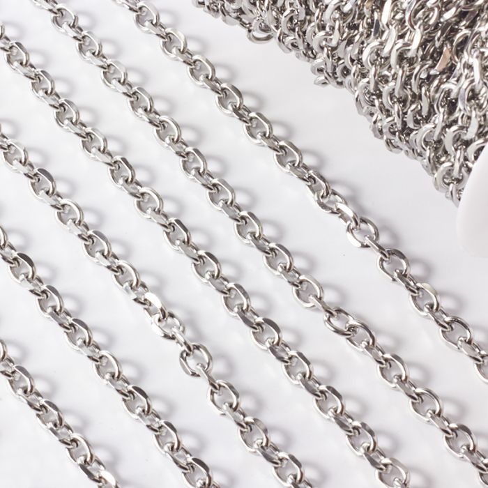Łańcuch ze stali chirurgicznej owal fasetowany w kolorze srebrnym 11x7mm