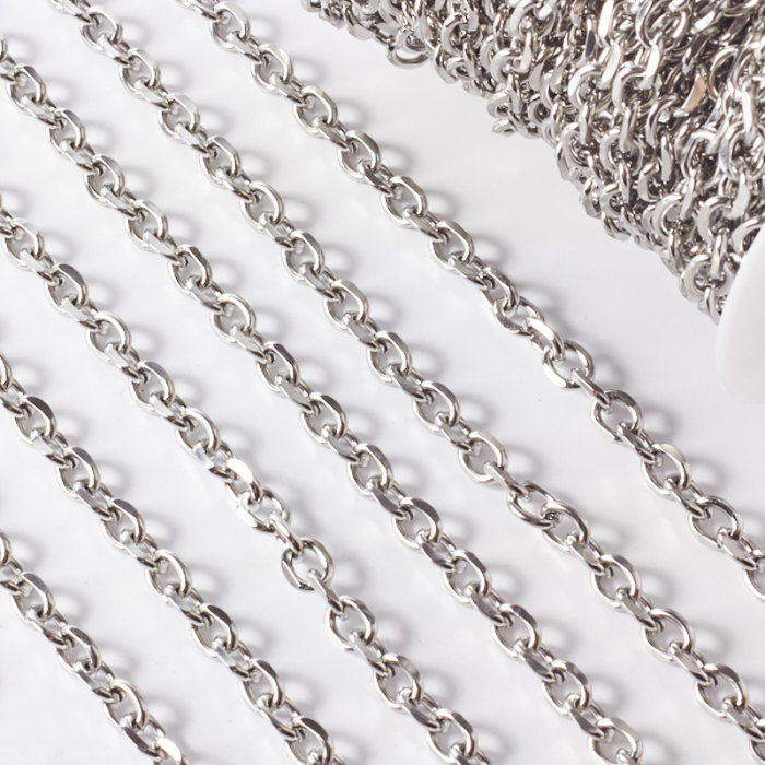 srebrny ułatwia dopasowanie łańcuszka do pozostałych elementów ze stali szlachetnej.To funkcjonalny komponent do biżuterii handmade oraz gotowych realizacji o nowoczesnym wyglądzie.