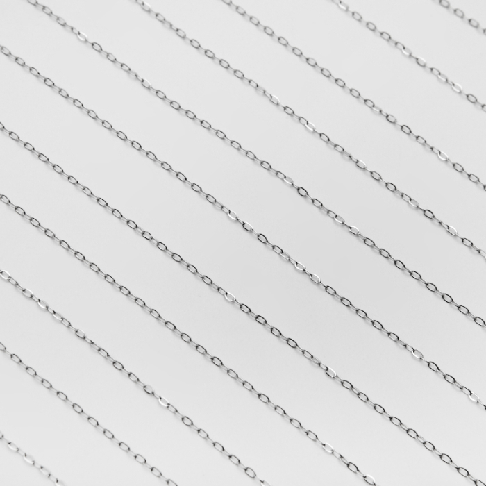 Łańcuszek forza owal płaski ze stali szlachetnej w kolorze srebrnym 2,3x1,3mmTo trwały i estetyczny element do tworzenia biżuterii handmade. Stal szlachetna jest ceniona za odporność na korozję i estetyczny wygląd w codziennym użytkowaniu.W tym produkcie zastosowano stal szlachetną