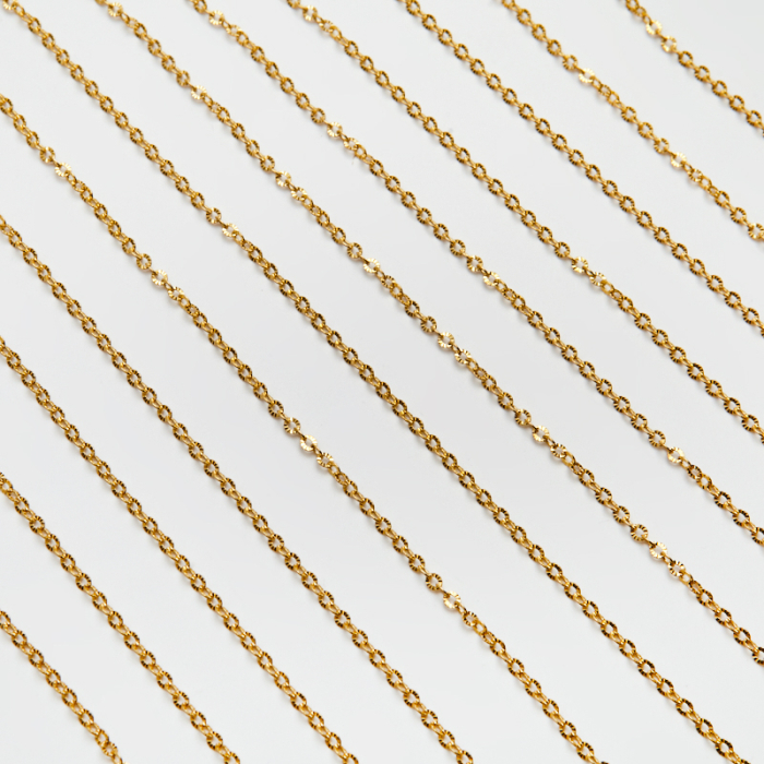 Łańcuszek owal karbowany ze stali chirurgicznej w kolorze złotym 3,5x3mmTo starannie wykonany element do tworzenia biżuterii handmade. Stal szlachetna dobrze sprawdza się w biżuterii noszonej na co dzień, ponieważ łączy trwałość z estetycznym wykończeniem.Łańcuszek ze stali szlachetnej to praktyczna baza do tworzenia naszyjników, bransoletek i innych projektów biżuteryjnych. Może pełnić funkcję gotowego elementu nośnego albo stanowić część większej kompozycji z zawieszkami, łącznikami czy detalami dekoracyjnymi.Rozmiar
