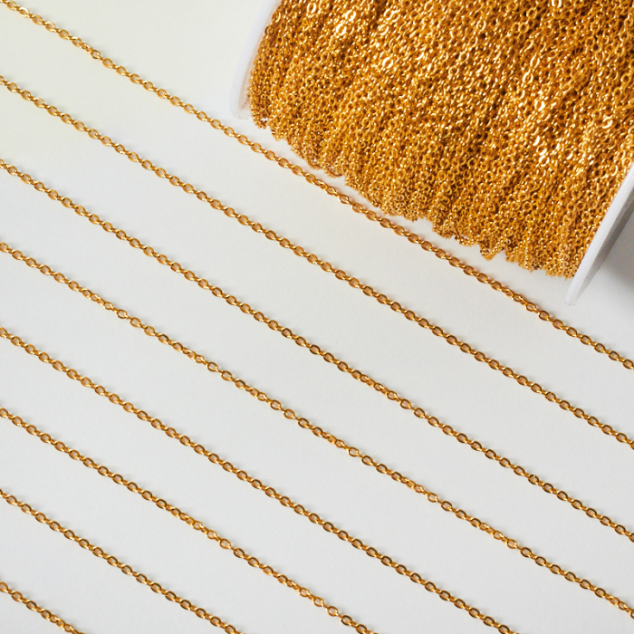 Łańcuszek owal ze stali chirurgicznej w kolorze złotym 2x1,7mmTo praktyczny półfabrykat do projektów biżuteryjnych. Stal szlachetna dobrze sprawdza się w biżuterii noszonej na co dzień, ponieważ łączy trwałość z estetycznym wykończeniem.Łańcuszek ze stali szlachetnej to praktyczna baza do tworzenia naszyjników, bransoletek i innych projektów biżuteryjnych. Może pełnić funkcję gotowego elementu nośnego albo stanowić część większej kompozycji z zawieszkami, łącznikami czy detalami dekoracyjnymi.Rozmiar