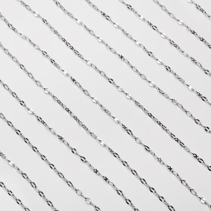 Łańcuszek ozdobny ósemki błyszczące ze stali szlachetnej w kolorze srebrnym 4,5x2mmTo praktyczny półfabrykat do projektów biżuteryjnych. Stal szlachetna dobrze sprawdza się w biżuterii noszonej na co dzień, ponieważ łączy trwałość z estetycznym wykończeniem.W tym produkcie zastosowano stal szlachetną