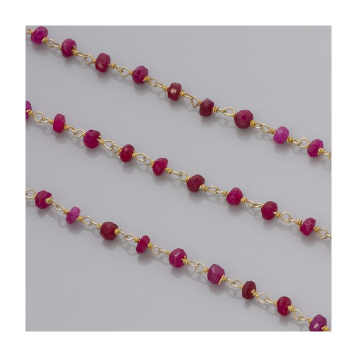 Łańcuszek srebrny z rubinem AG925 pozłacany 3mm