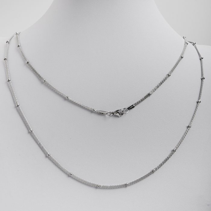 Łańcuszek ze stali chirurgicznej Bismarck z oponkami w kolorze srebrnym 60cm
