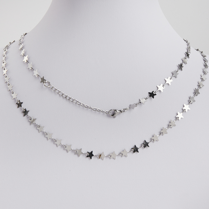 Łańcuszek ze stali chirurgicznej gwiazdki w kolorze srebrnym 50cm