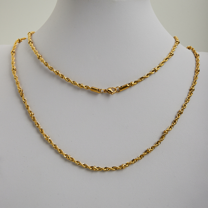 Łańcuszek ze stali chirurgicznej kordel w kolorze złotym 55cmTo uniwersalny element wykończeniowy i dekoracyjny do projektów jubilerskich. To materiał chętnie wybierany do biżuterii handmade ze względu na trwałość, estetykę i wygodę użytkowania.Łańcuszek ze stali szlachetnej to praktyczna baza do tworzenia naszyjników, bransoletek i innych projektów biżuteryjnych. Może pełnić funkcję gotowego elementu nośnego albo stanowić część większej kompozycji z zawieszkami, łącznikami czy detalami dekoracyjnymi.Rozmiar