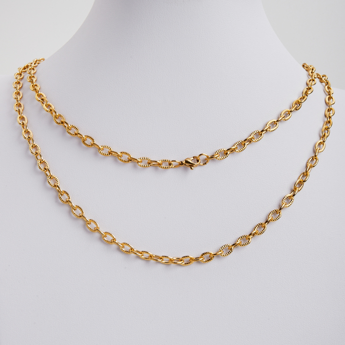 Łańcuszek ze stali chirurgicznej owale nacinane w kolorze złotym 50cm