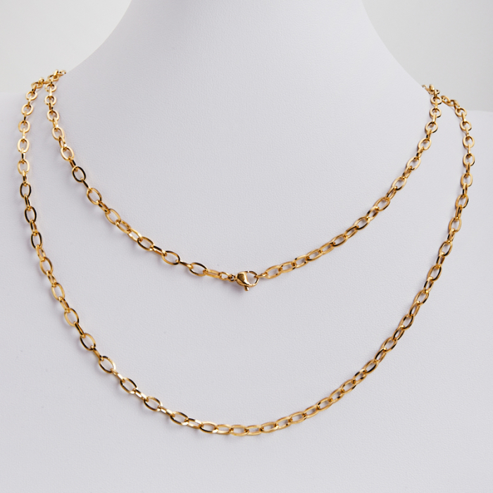 Łańcuszek ze stali chirurgicznej owale w kolorze złotym 70cmTo uniwersalny element wykończeniowy i dekoracyjny do projektów jubilerskich. W biżuterii handmade stal chirurgiczna 316L jest ceniona za dobry wygląd, odporność na korozję i wygodę codziennego użytkowania.Łańcuszek ze stali chirurgicznej 316L to praktyczna baza do tworzenia naszyjników, bransoletek i innych projektów biżuteryjnych. Może pełnić funkcję gotowego elementu nośnego albo stanowić część większej kompozycji z zawieszkami, łącznikami czy detalami dekoracyjnymi.Rozmiar