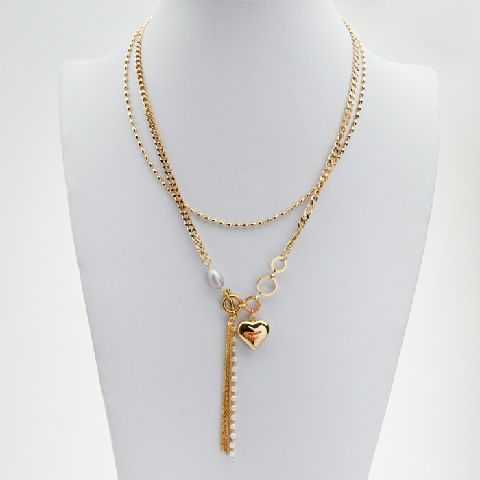 Łańcuszek ze stali chirurgicznej z serduszkiem i perłą w kolorze złotym 45cm