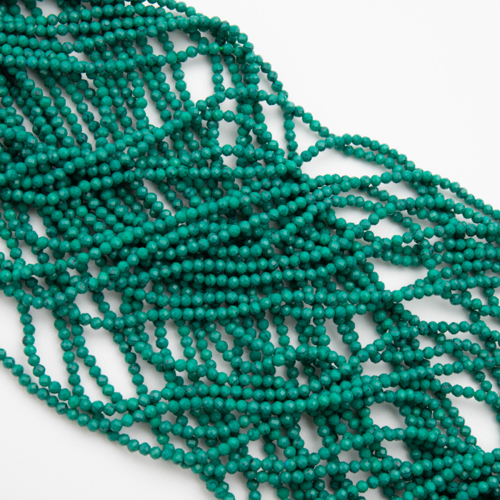 Kamienie naturalne wykonane z magnezytu w kształcie kulki fasetowanej. Dominujący kolor kamieni to zielony, z charakterystycznymi, ciemniejszymi nitkami. Kamienie posiadają naturalnie powstałe wrostki oraz przebarwienia.*Ponieważ są to kamienie naturalne mogą się nieznacznie różnić od siebie rozmiarem i kolorem w zależności od partii produkcyjnej.*Rozmiar podany w nazwie produktu jest wartością orientacyjną. Charakterystyka: