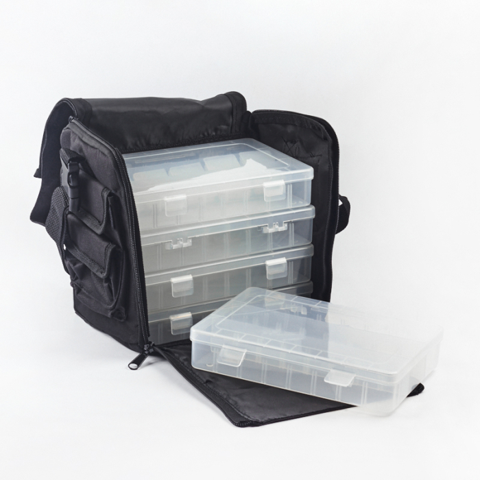 Materiałowa torba z plastikowymi pudełkami 20,3x21x15,2cm