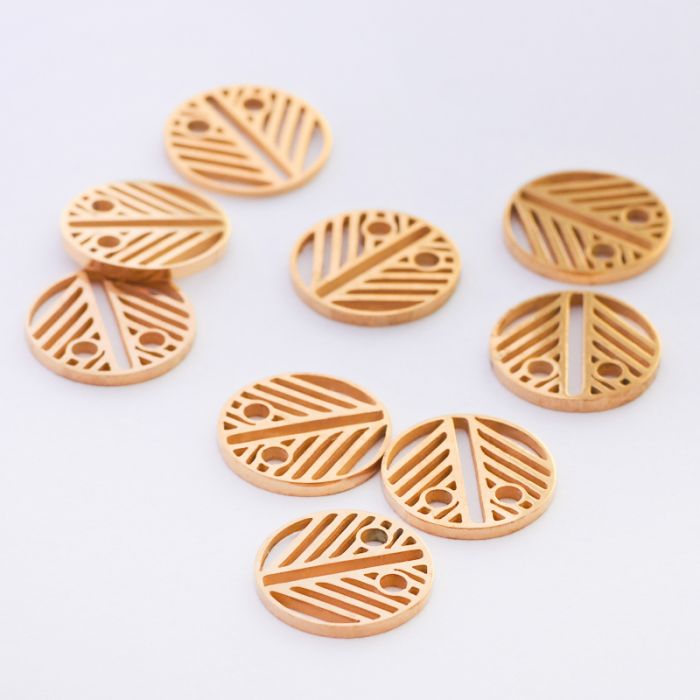 Mini zawieszka ze stali chirurgicznej celebrytka kółko wycinane w kolorze złotym 8,5mm