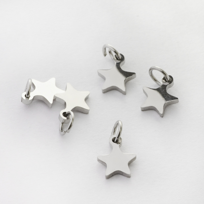 Mini zawieszka ze stali szlachetnej gwiazdka w kolorze srebrnym 7mmTo dopracowany produkt ze stali szlachetnej, który łączy praktyczność z estetycznym wyglądem. To materiał chętnie wybierany do biżuterii handmade ze względu na trwałość, estetykę i wygodę użytkowania.Stal szlachetna to materiał ceniony za trwałość i estetyczny wygląd w codziennym użytkowaniu.W tym produkcie zastosowano stal szlachetną