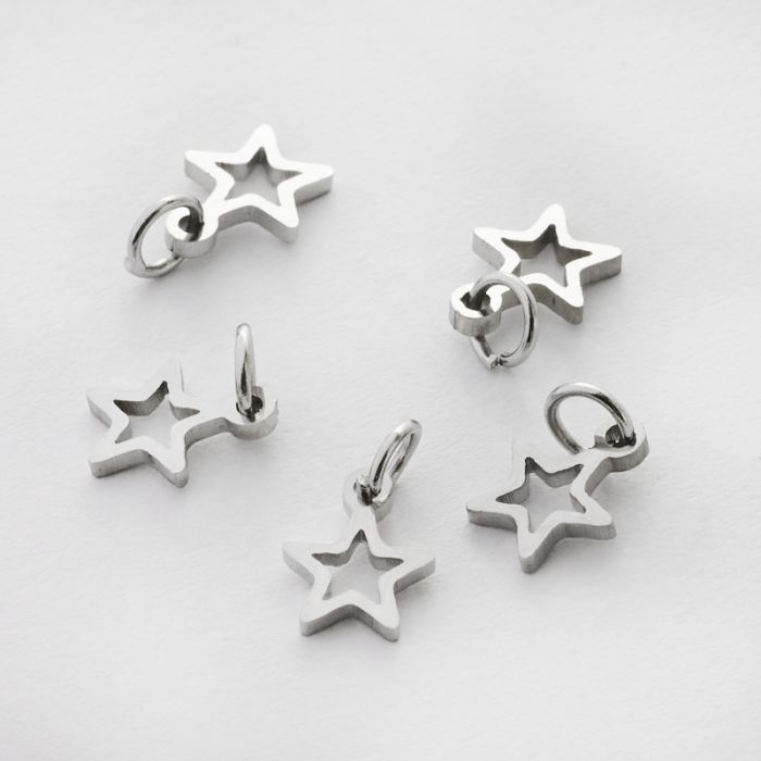 Mini zawieszka ze stali chirurgicznej gwiazdka wycięta w kolorze srebrnym 8mm