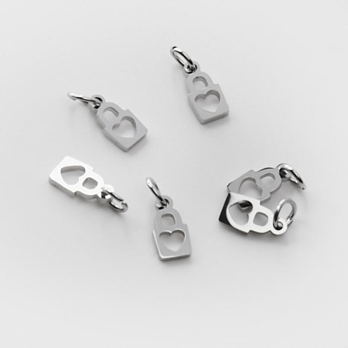 Mini zawieszka ze stali chirurgicznej kłódka z serduszkiem w kolorze srebrnym 8mm