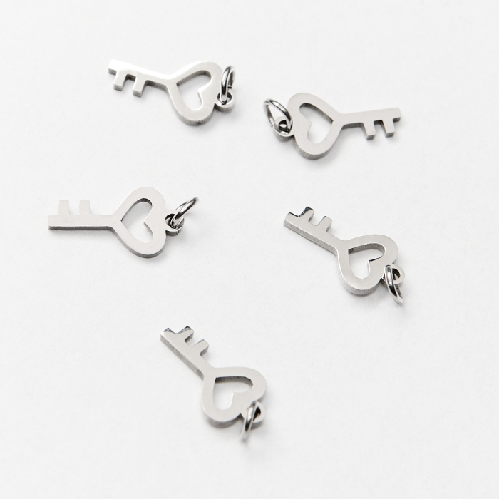 Mini zawieszka ze stali chirurgicznej kluczyk z serduszkiem w kolorze srebrnym 12mm