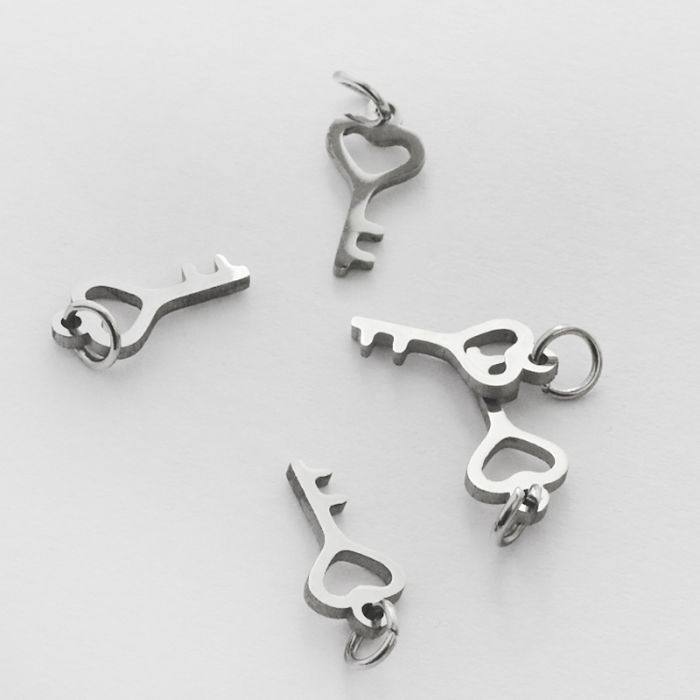 Mini zawieszka ze stali chirurgicznej kluczyk z serduszkiem w kolorze srebrnym 12mm