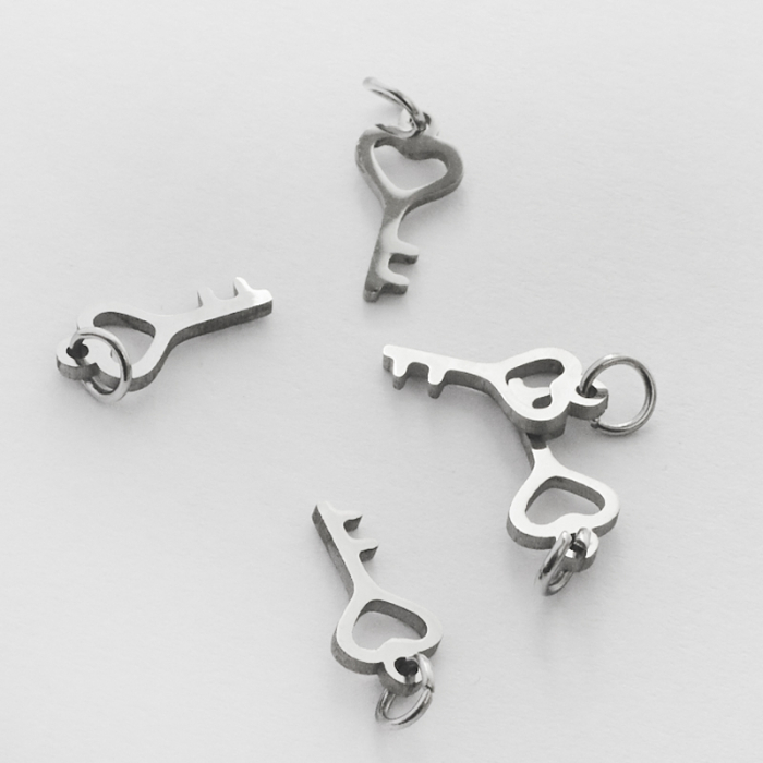 Mini zawieszka ze stali szlachetnej kluczyk z serduszkiem w kolorze srebrnym 12mmTo trwały element biżuterii lub półfabrykat jubilerski, który dobrze sprawdza się w codziennych realizacjach. Stal szlachetna to materiał ceniony za trwałość i estetyczny wygląd w codziennym użytkowaniu.W tym produkcie zastosowano stal szlachetną