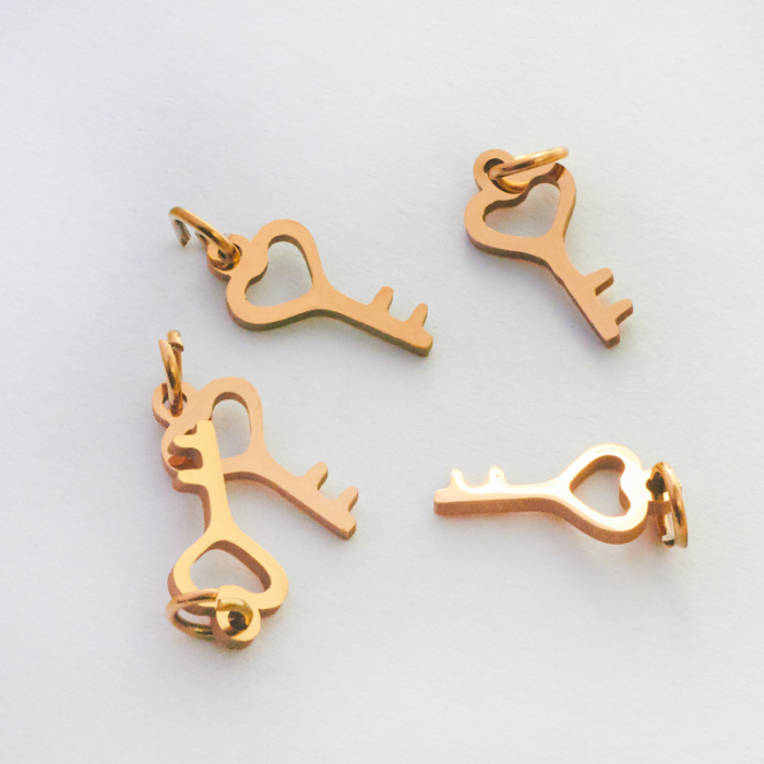 Mini zawieszka ze stali szlachetnej kluczyk z serduszkiem w kolorze złotym 12mmTo dopracowany produkt ze stali szlachetnej, który łączy praktyczność z estetycznym wyglądem. W biżuterii handmade stal szlachetna jest ceniona za dobry wygląd, odporność na korozję i wygodę codziennego użytkowania.Stal szlachetna to materiał ceniony za trwałość i estetyczny wygląd w codziennym użytkowaniu.W tym produkcie zastosowano stal szlachetną