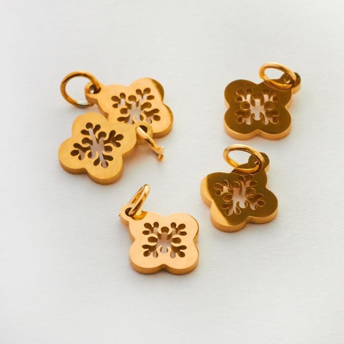 Mini zawieszka ze stali chirurgicznej koniczynka marokańska ażurowa w kolorze złotym 9,5mm PVD