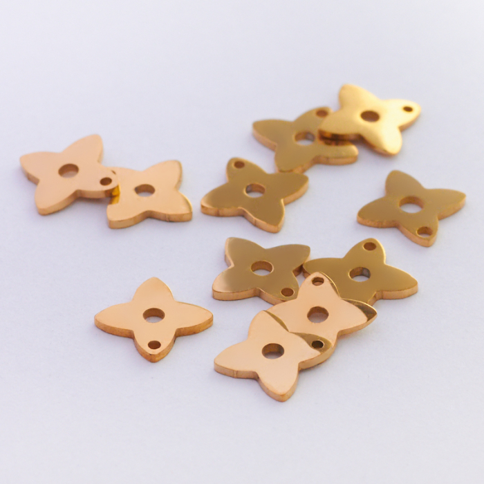 Mini zawieszka ze stali szlachetnej koniczynka w kolorze złotym 6mmTo starannie wykonany produkt ze stali szlachetnej, który dobrze prezentuje się w codziennym użytkowaniu. Stal szlachetna to materiał ceniony za trwałość i estetyczny wygląd w codziennym użytkowaniu.W tym produkcie zastosowano stal szlachetną