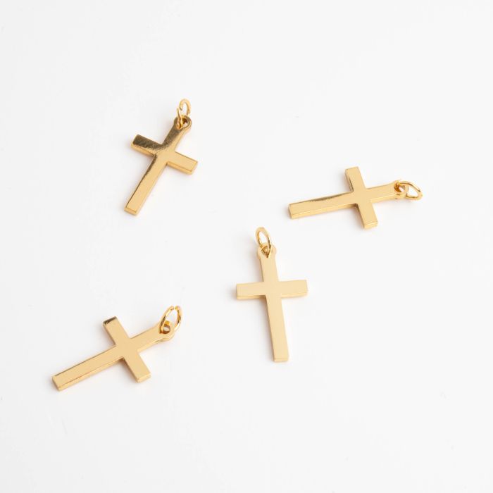 Mini zawieszka ze stali chirurgicznej krzyżyk w kolorze złotym 14,5mm