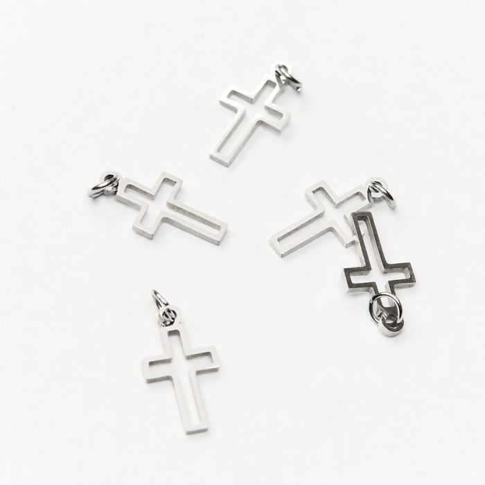 Mini zawieszka ze stali chirurgicznej krzyżyk wycięty w kolorze srebrnym 13mm