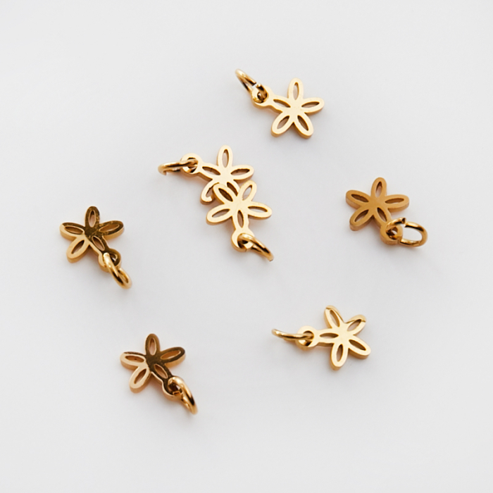 Mini zawieszka ze stali chirurgicznej kwiatek w kolorze złotym 7mm PVD