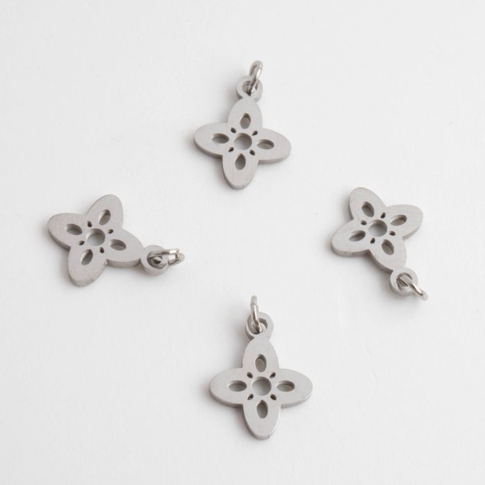 Mini zawieszka ze stali chirurgicznej kwiatek wycięty w kolorze srebrnym 10mm