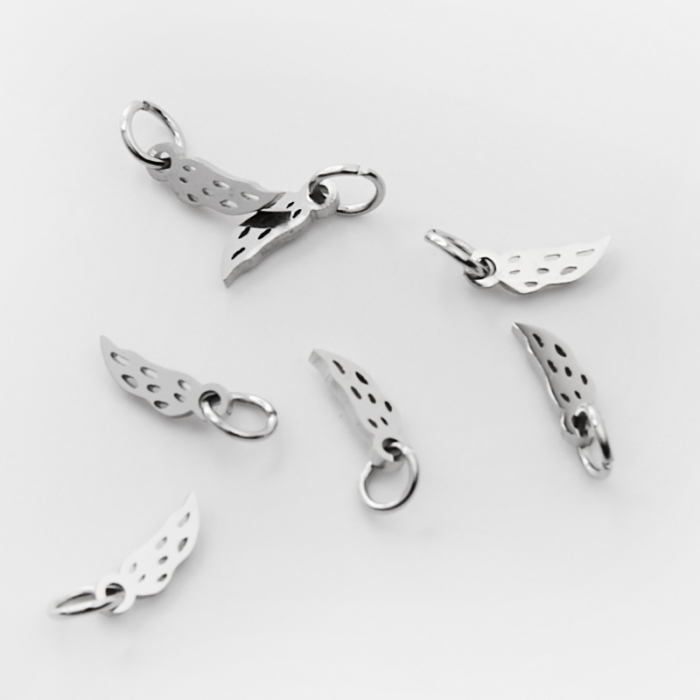 Mini zawieszka ze stali chirurgicznej skrzydełko w kolorze srebrnym 8mm