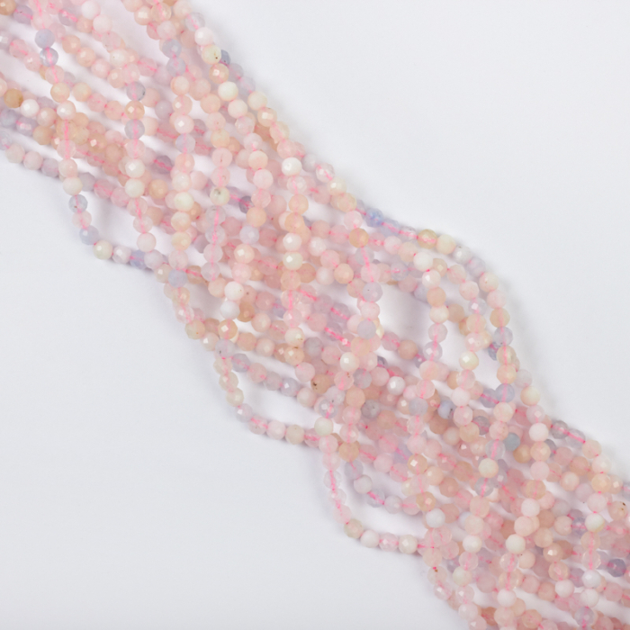 Kamienie naturalne wykonane z morganitu w kształcie kulki fasetowanej. Dominujący kolor to pudrowy róż, niektóre kamienie są wymieszane z jasnym fioletem, beżem i bielą. Kamienie posiadają naturalne wrostki.*Ponieważ są to kamienie naturalne mogą się nieznacznie różnić od siebie rozmiarem.*Rozmiar podany w nazwie produktu jest wartością orientacyjną. Charakterystyka: