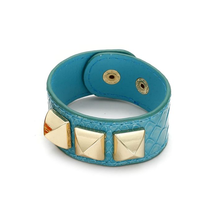 Turkusowa skórka krokodyla oraz klimatyczne, złote piramidki tworzą kompozycję idealną na gorące lato. Ćwieki można delikatnie przesunąć układając je równo lub pod kątem. To uczni Twoją biżuterię jeszcze bardziej wyjątkową.
