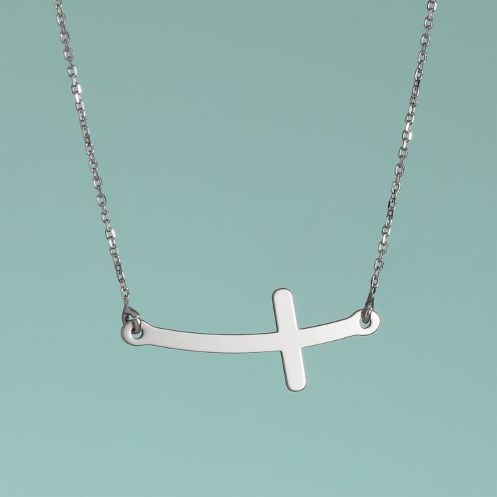 Naszyjnik rodowany z krzyżem wygiętym AG925 42 cm