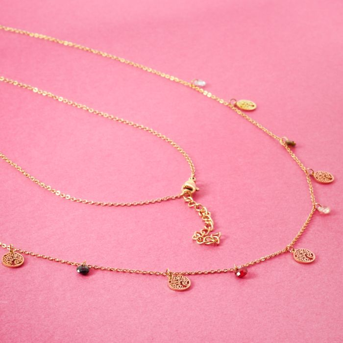 Naszyjnik z mini zawieszkami ze stali chirurgicznej drzewko i cyrkonie w kolorze złotym 41cm