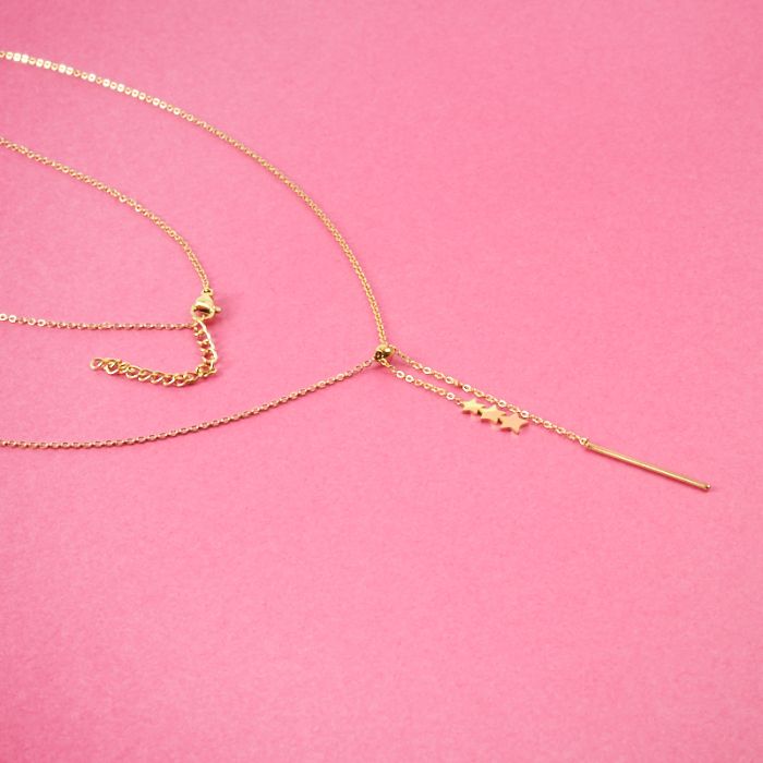 Naszyjnik z mini zawieszkami ze stali chirurgicznej gwiazdki z patyczkiem w kolorze złotym 39,5cm