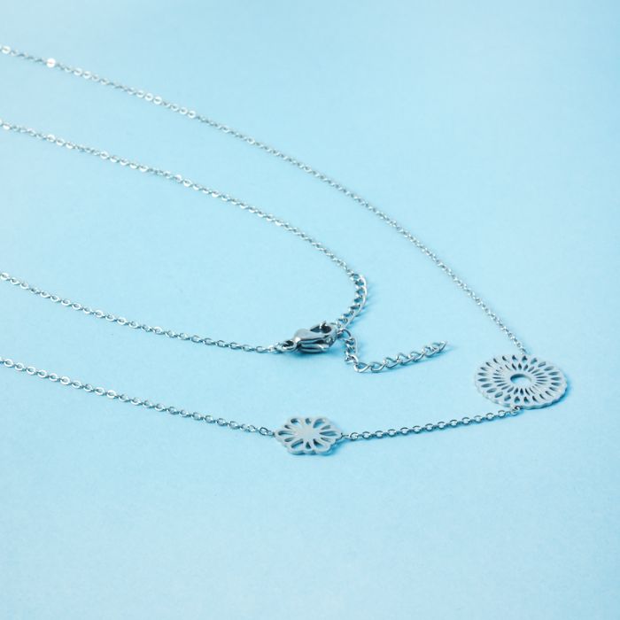 Naszyjnik z mini zawieszkami ze stali chirurgicznej kółka ażurowe w kolorze srebrnym 41cm